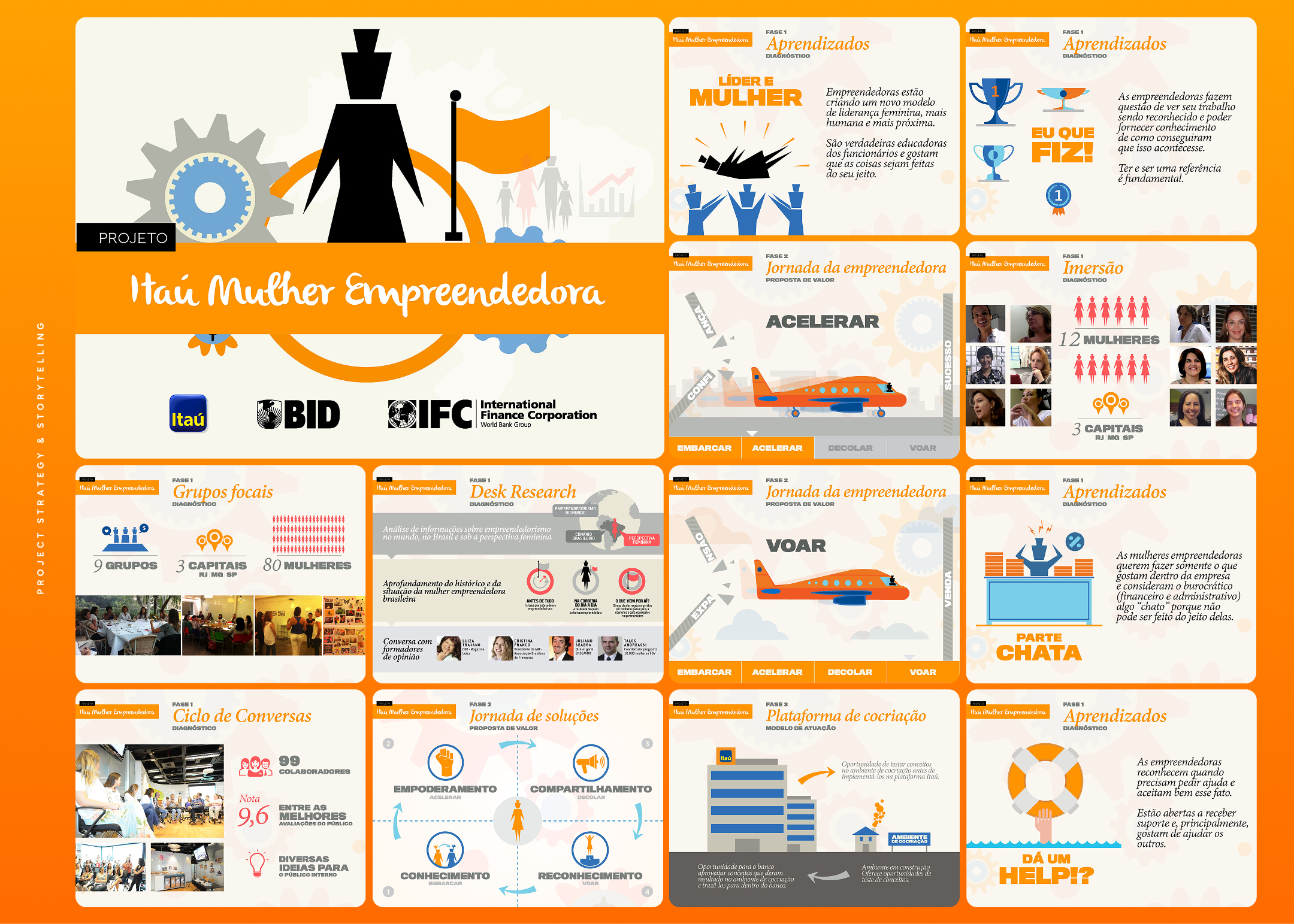 I took part in several high impact projects helping with strategic thinking and storytelling, but most importantly Itaú Women Entrepreneurs, an award winning initiative that recognized Itaú internationally as the best bank for women entrepreneurs. The initiative positioned Itaú as a global reference in financial services for women, reinforcing brand equity while generating meaningful business and reputational impact. We talked with women to understand their daily lives, we identified their needs, and created a package of services and products to help them grow and expand, like a heavily adopted learning platform.